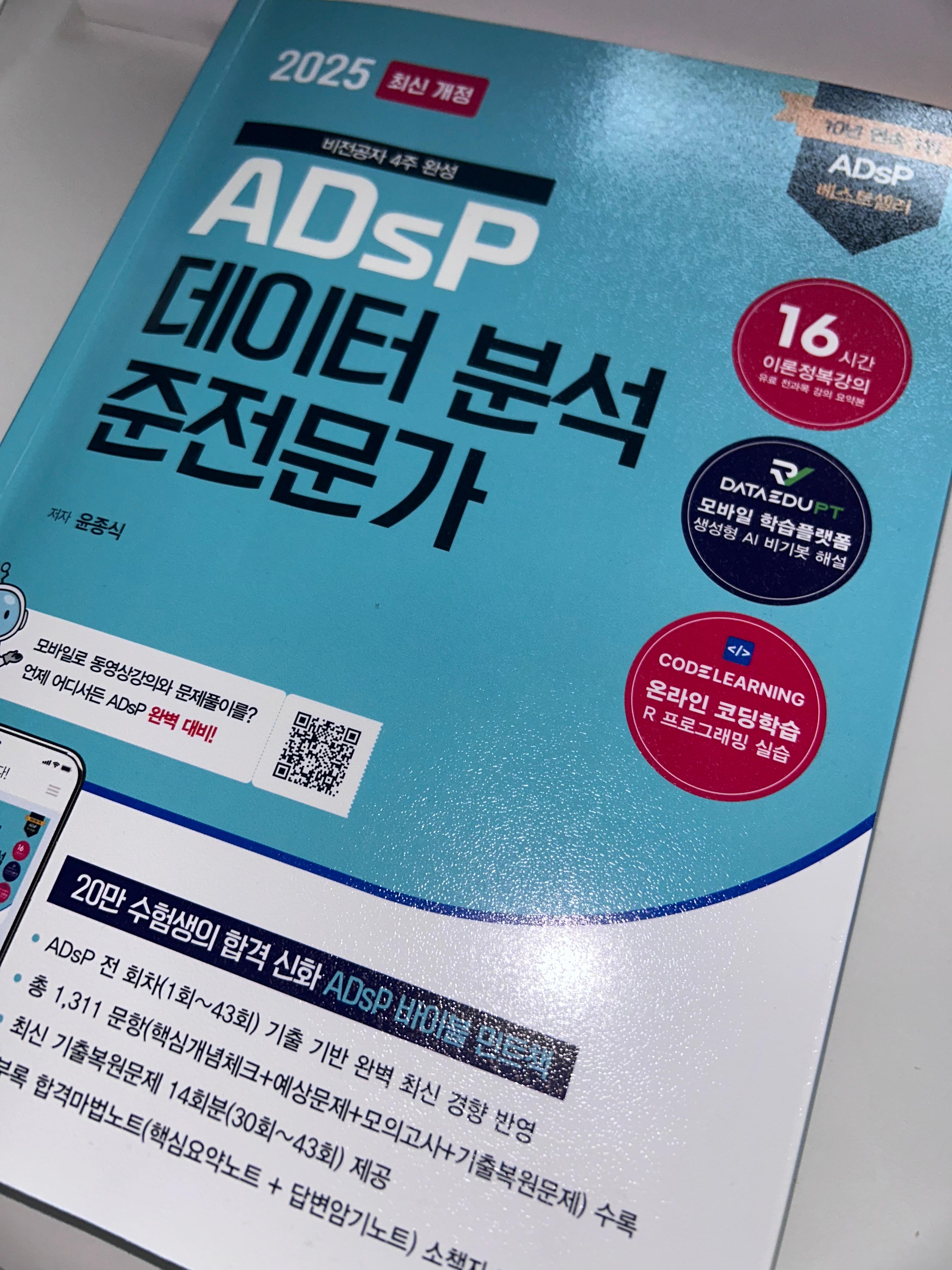 안녕하십니까...? 교재 추천 글을 쓰며 공부 시작을 외쳤던 게 며칠 안 된 거 같은데어째서 제가 이미 시험을 보고 왔는지 모르겠습니다... 얼레벌레 시험 준비하고 응시까지 하고 온 후기 레츠고 시험 준비 과정 첫 ADsP 시험은 데이터 에듀 민트책과 함께 했습니다. 부트 캠프 수업과 시험, 그리고 스터디동기들과 함께하는 공모전 준비들까지...아쉽게도 이번에 ADsP에만 집중했던 기간은 1주일도 안 되었습니다 😢 그리하여1주일 용사?레츠고 상태 민트책 2회독 + 요약집 + 데이터에듀PT 이렇게 공부했습니다. 1회독은 간단하게 정말 책을 읽듯이 살펴보았고 2회독 때는 중요한 것을 위주로 읽을려고 노력했습니다.그 다음 민트책에 있는 요약본을 시험장까지 들고가면서 훑어봤습니다. 또, 민트책은 진짜 많은 ..
